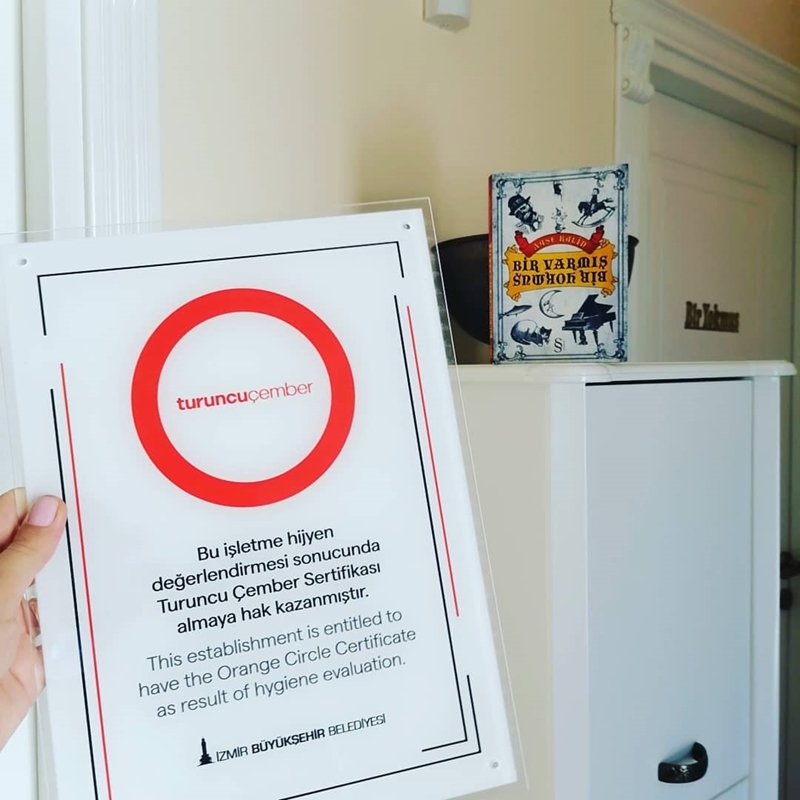 5000 kitaplık kütüphanemizden takip bir kitap veya deniz manzarası kahvenize edebilir. Onun yaşa uygun masal anlatımız ile kendinize bir hediye verebilirsiniz. Üst katta bulunan farklı konsepte sahip '' Bir Varmış '' ve '' Bir Yokmuş '' adlı odalarımızda konaklayarak özel butik tatilinizi yapmış olabilirsiniz. Tüm hijyen sertifikasyon kurallarını web sitemizde uyguladığımız evimiz '' TURUNCU ÇEMBER '' sertifikasına layık görülmüştür.